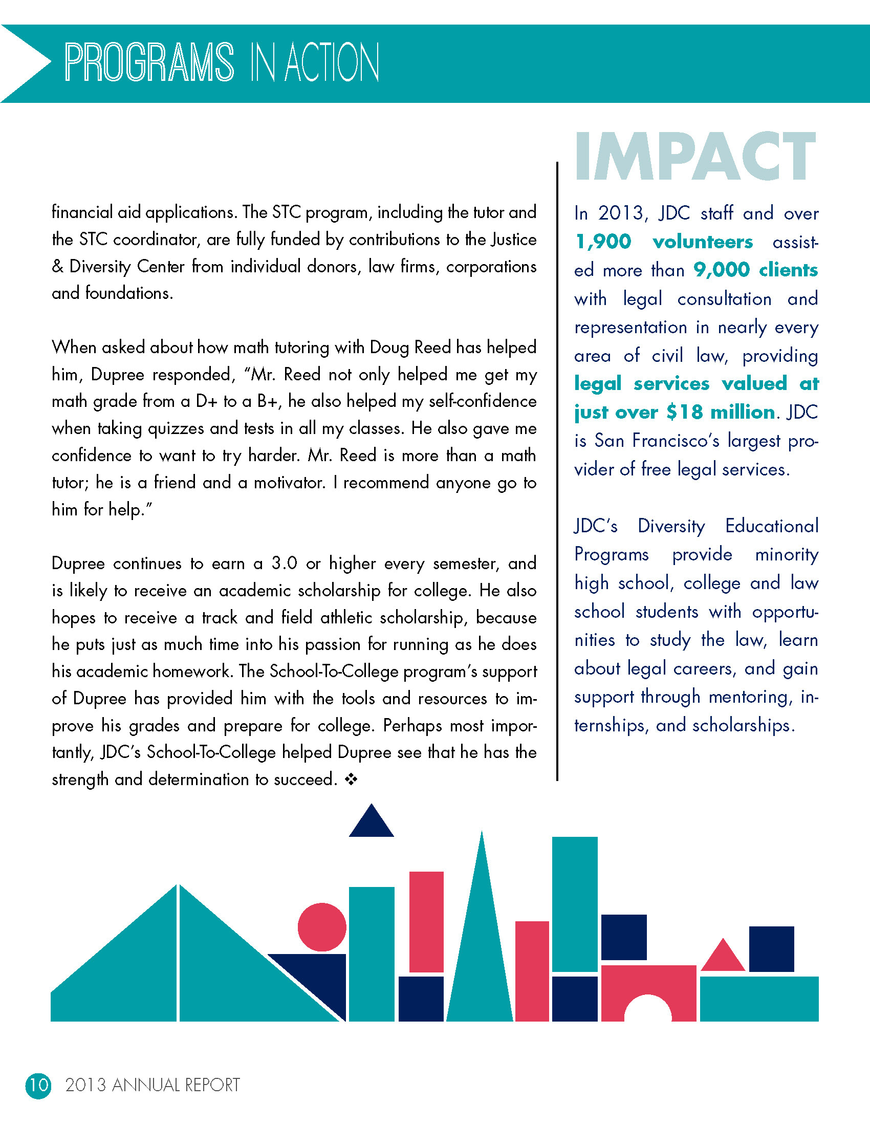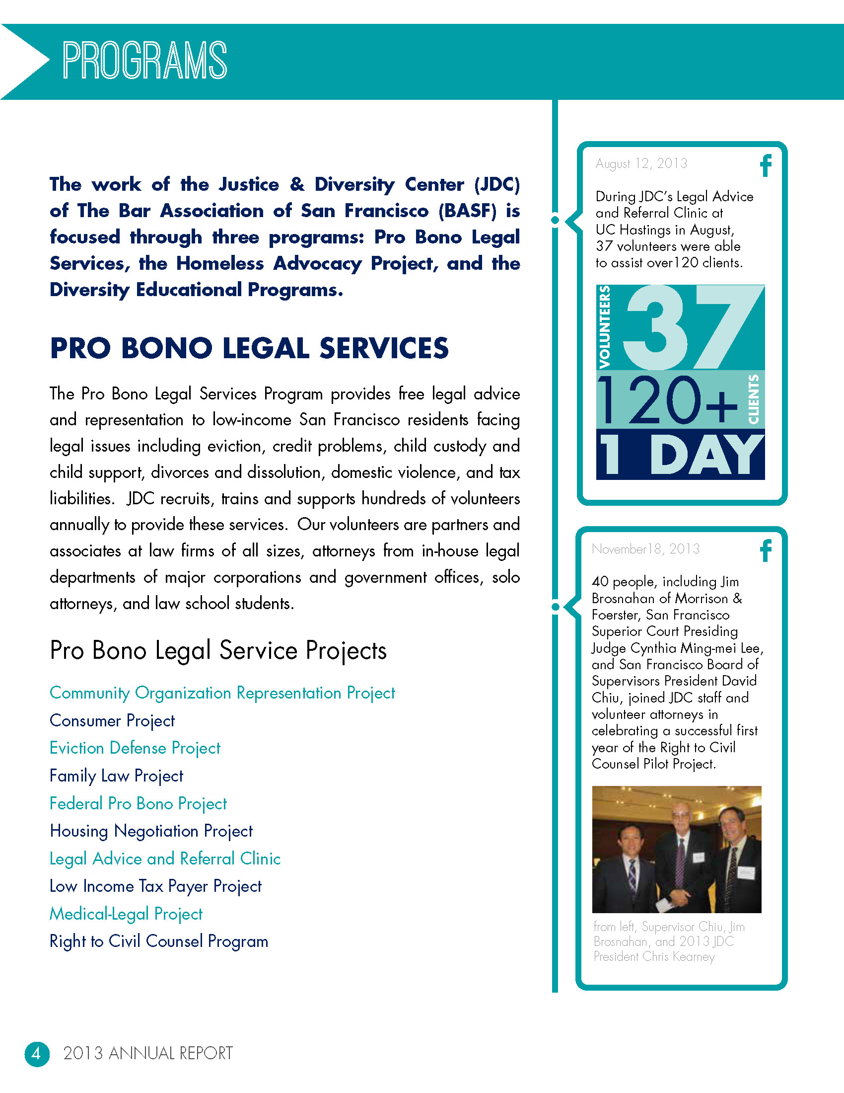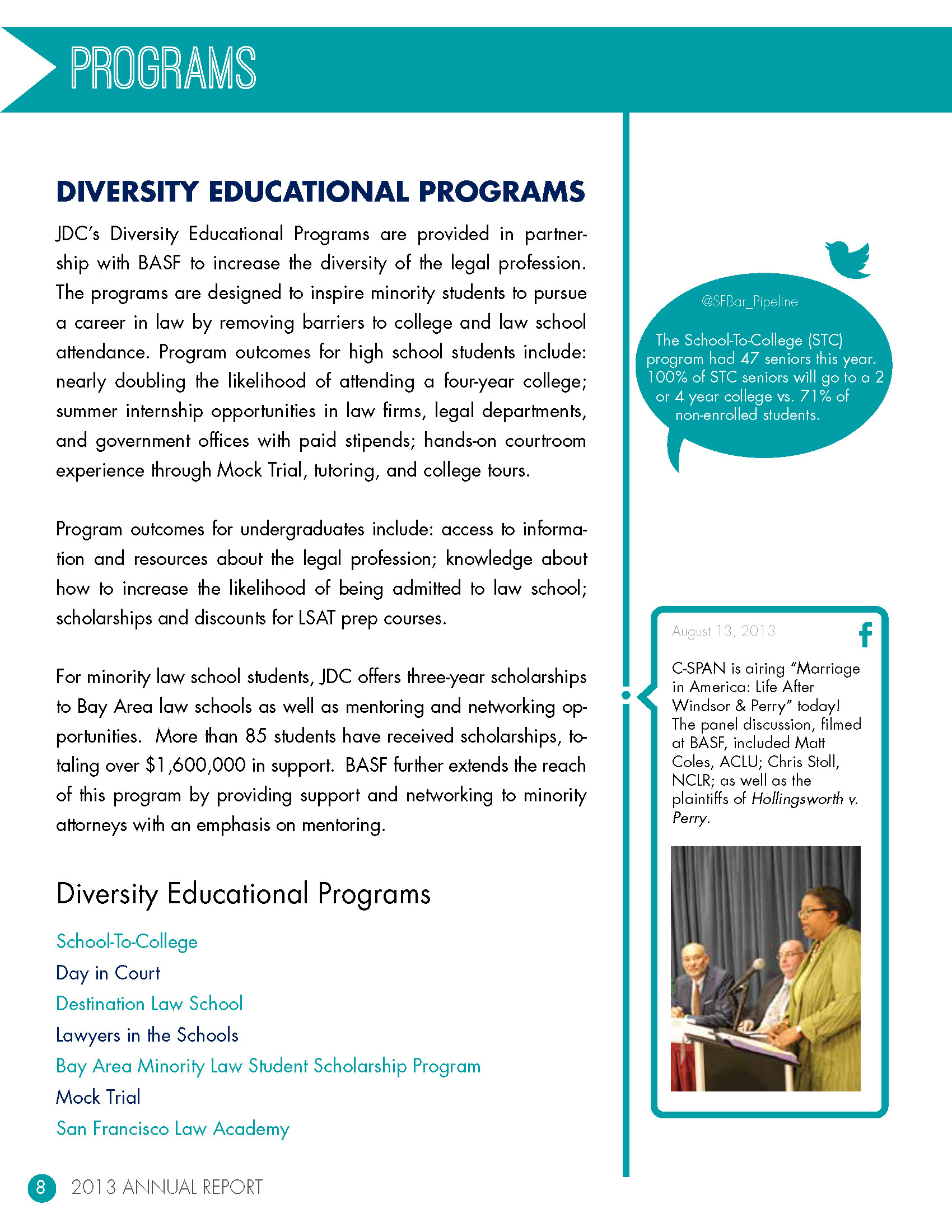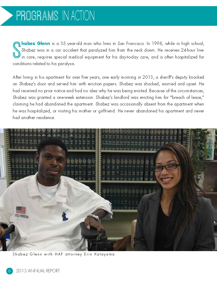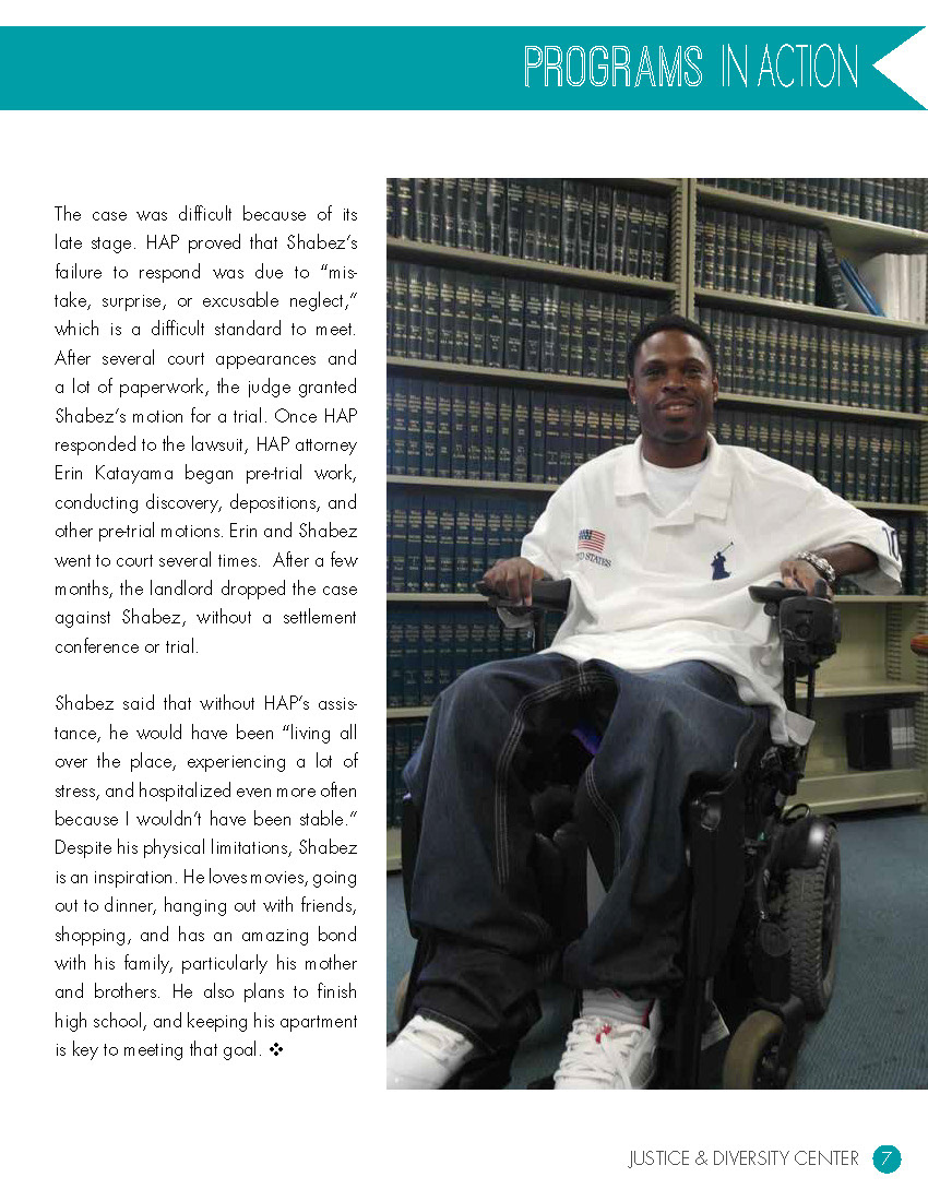 pages from the 2013 annual report for the Justice & Diversity Center in San Francisco